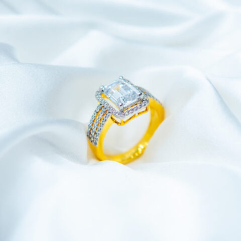 Gold and white gold look ring with center pressure setting SSD213