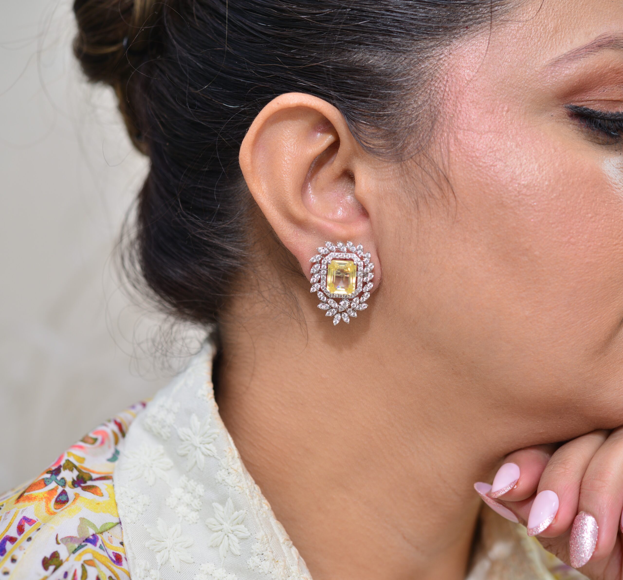 Elegant white with yellow stone tops SSD148