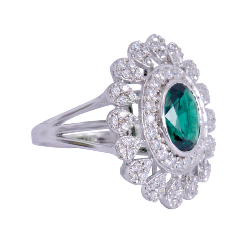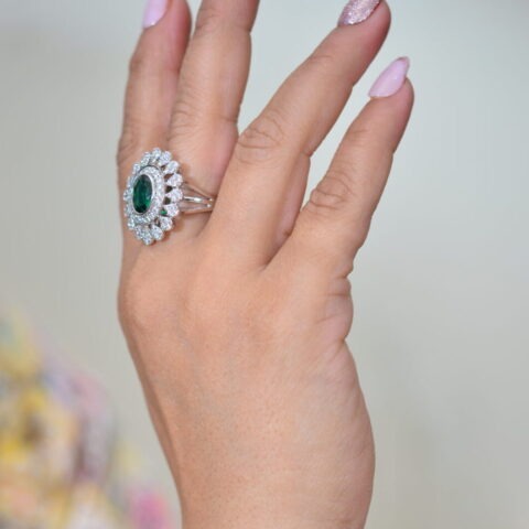 White and centered green oval stone ring SSD160