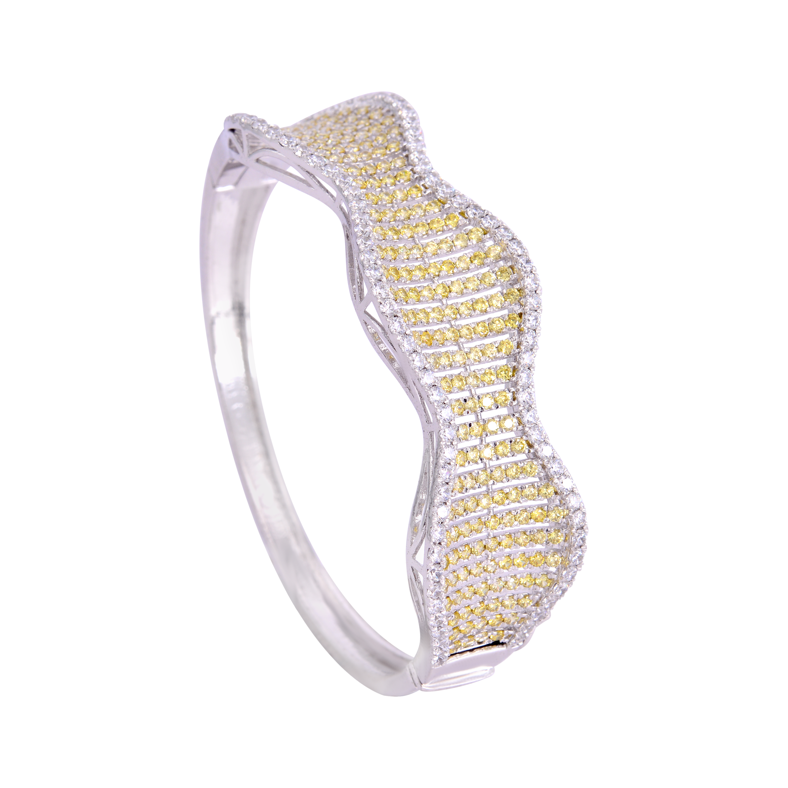Bold and contemporary. This Kada-style bracelet features a striking contrast of rich yellow and bright white finishes, perfect for modern elegance.