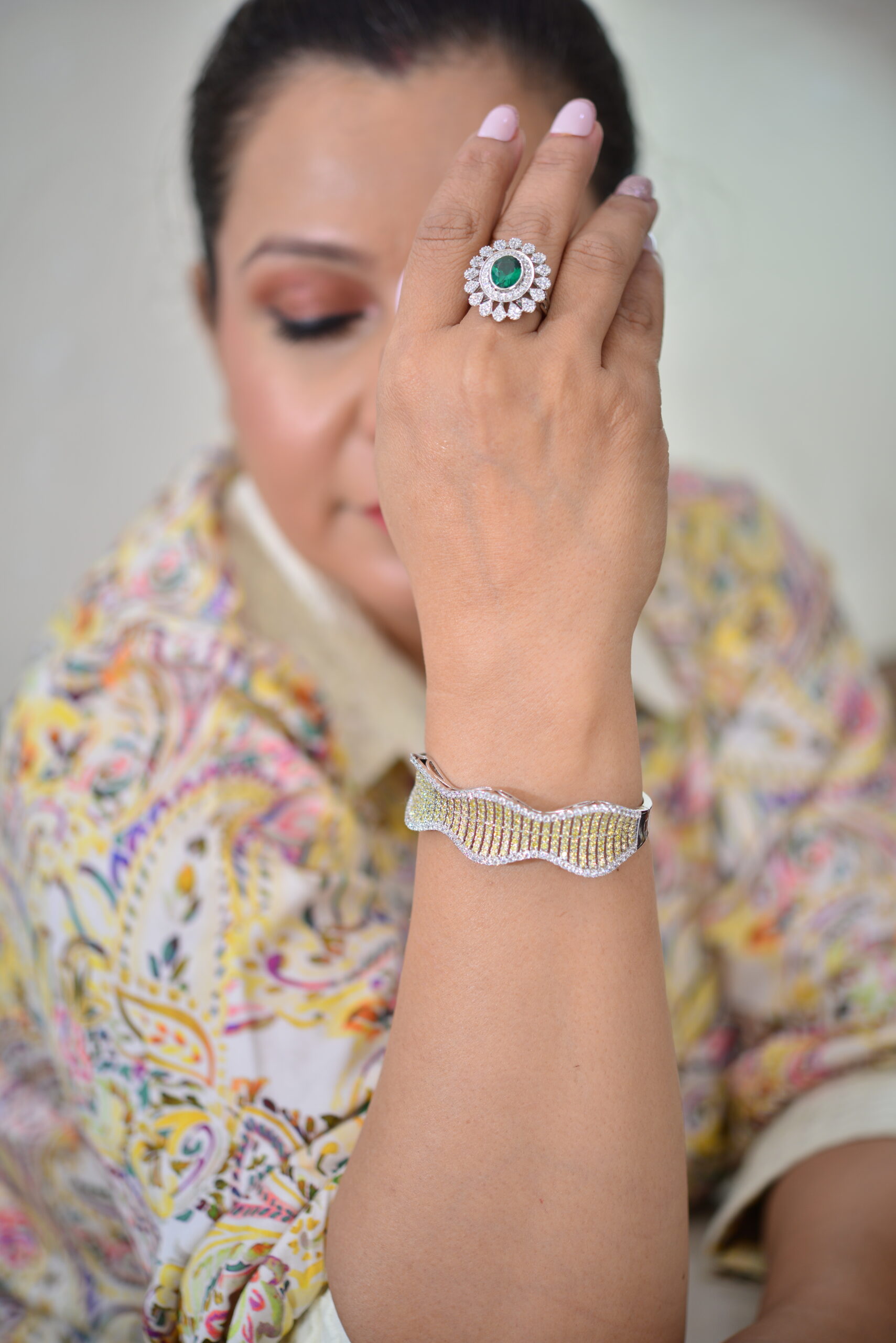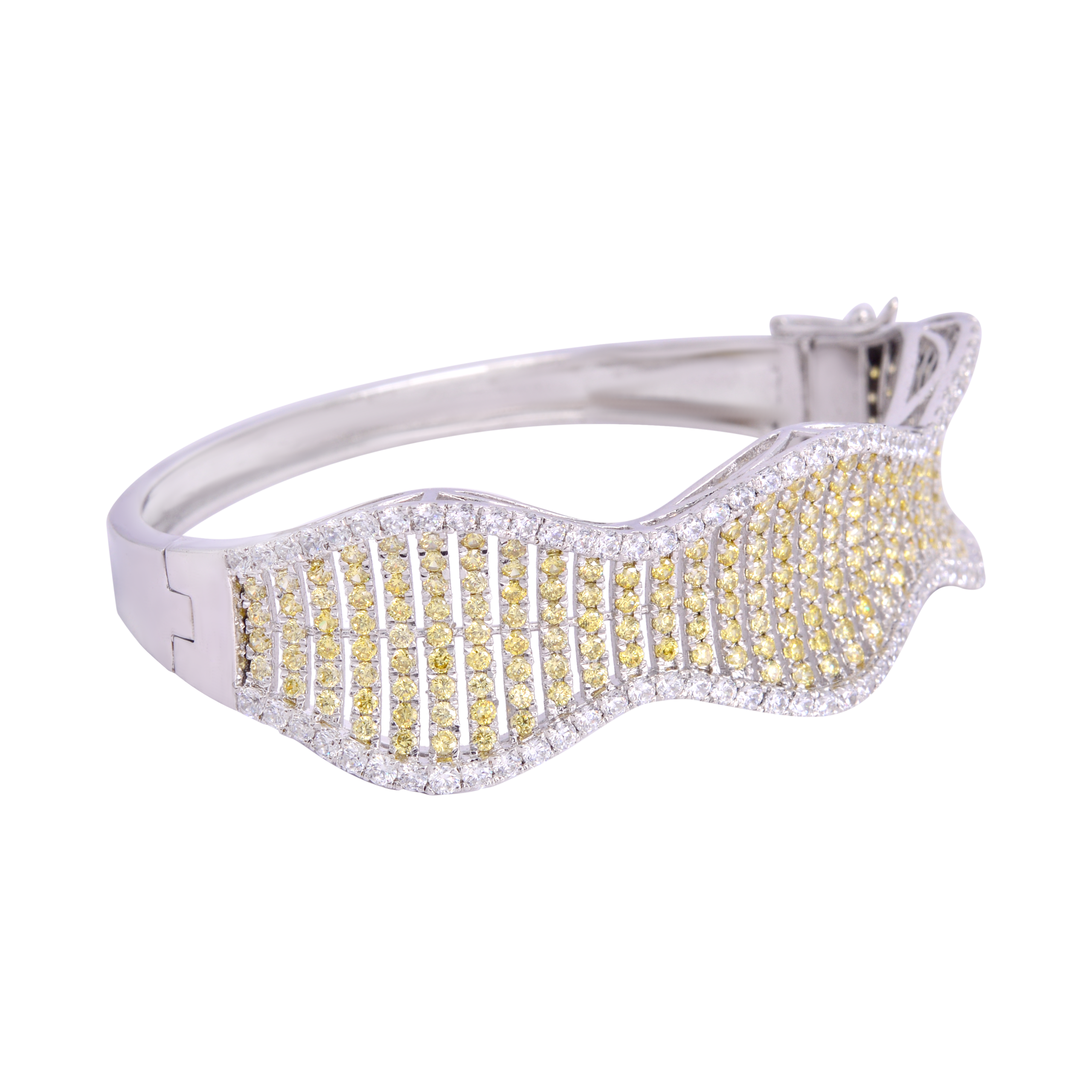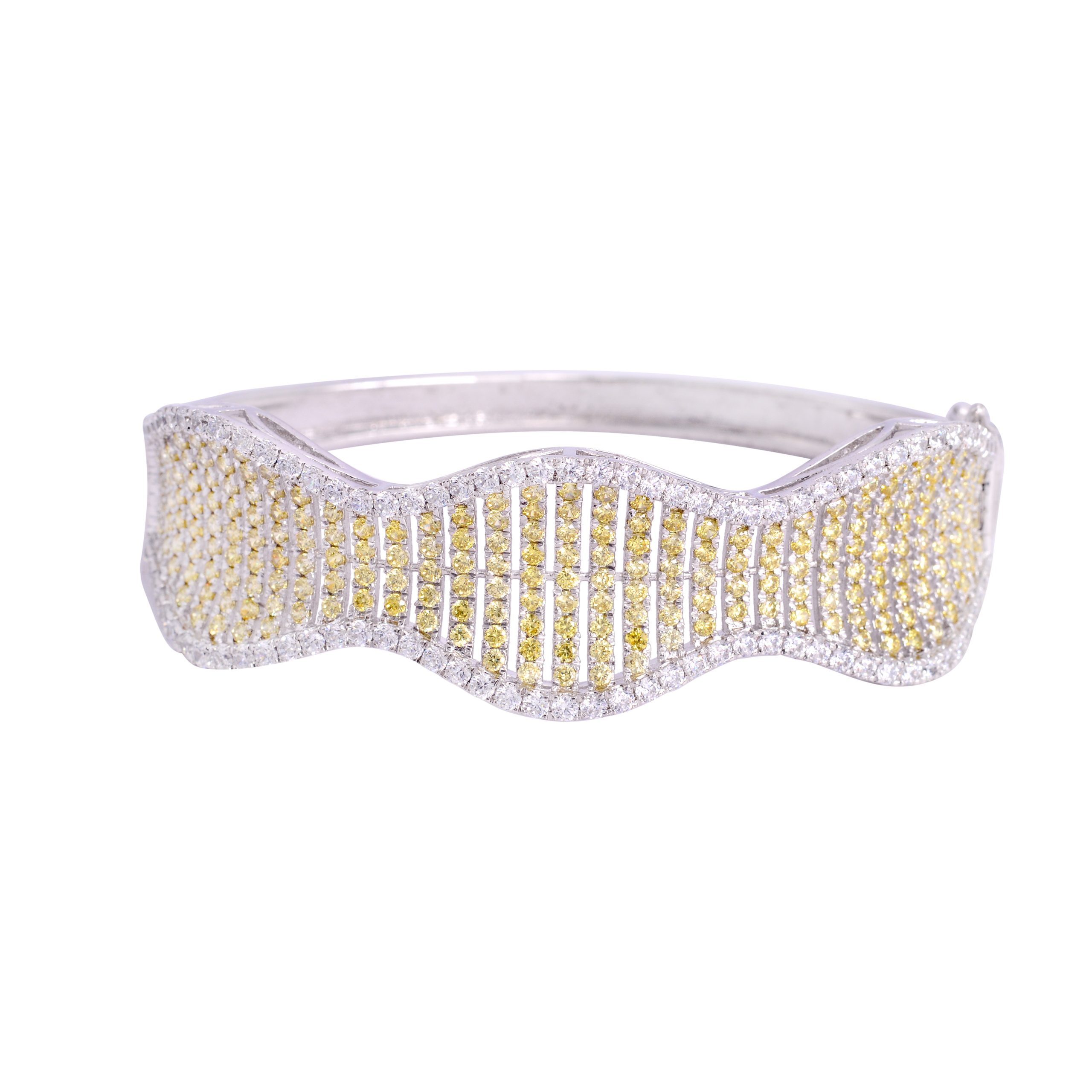 Luxurious yellow and white finish on a classic Kara bracelet. A substantial piece designed for daily elegance and impact.
